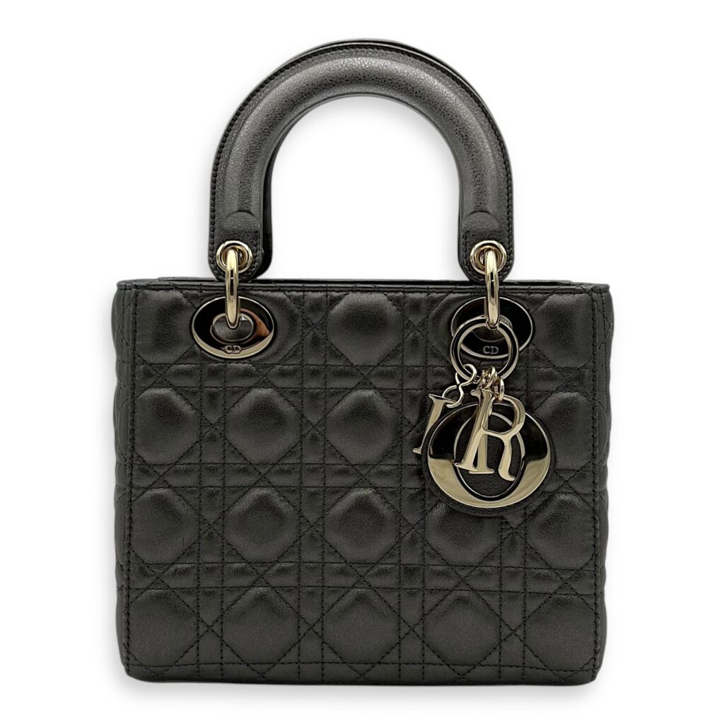 Lady Dior Small Grey Top Handle Bag in Lambskin, Gold hardware