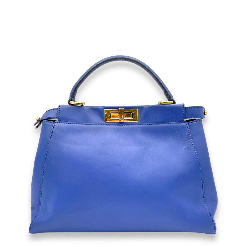 Peekaboo Medium Blue Top Handle Bag in Calfskin, Gold hardware