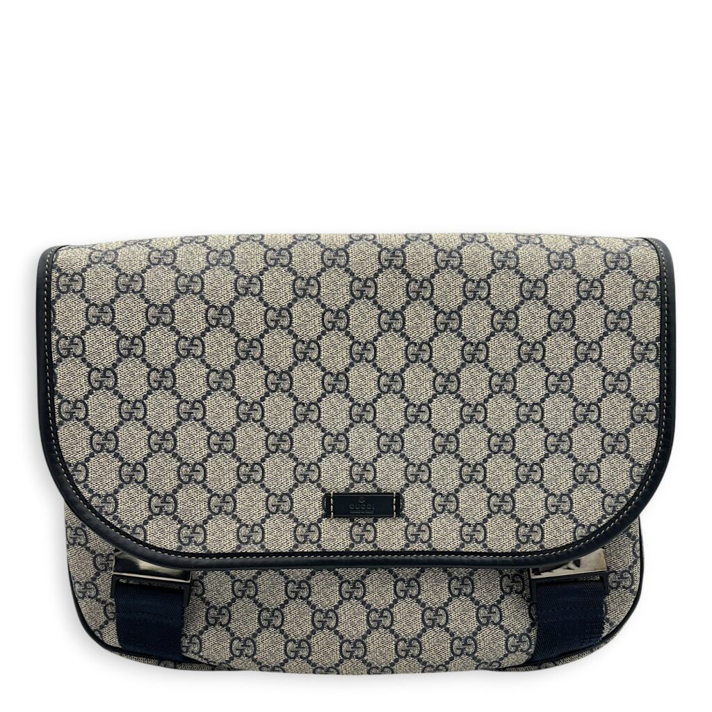 Guccissima Messenger Blue in Coated Canvas, Silver hardware