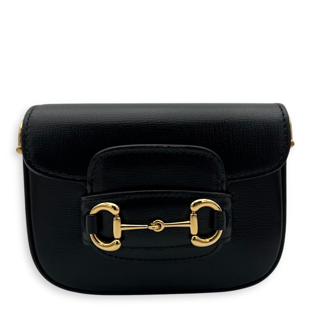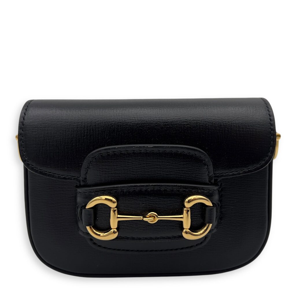 Horsebit 1955 Crossbody Bag Super Mini Black in Calfskin, Gold hardware