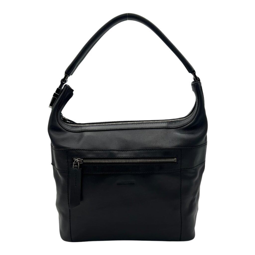 Hobo Black Top Handle Bag in Calfskin, Silver hardware
