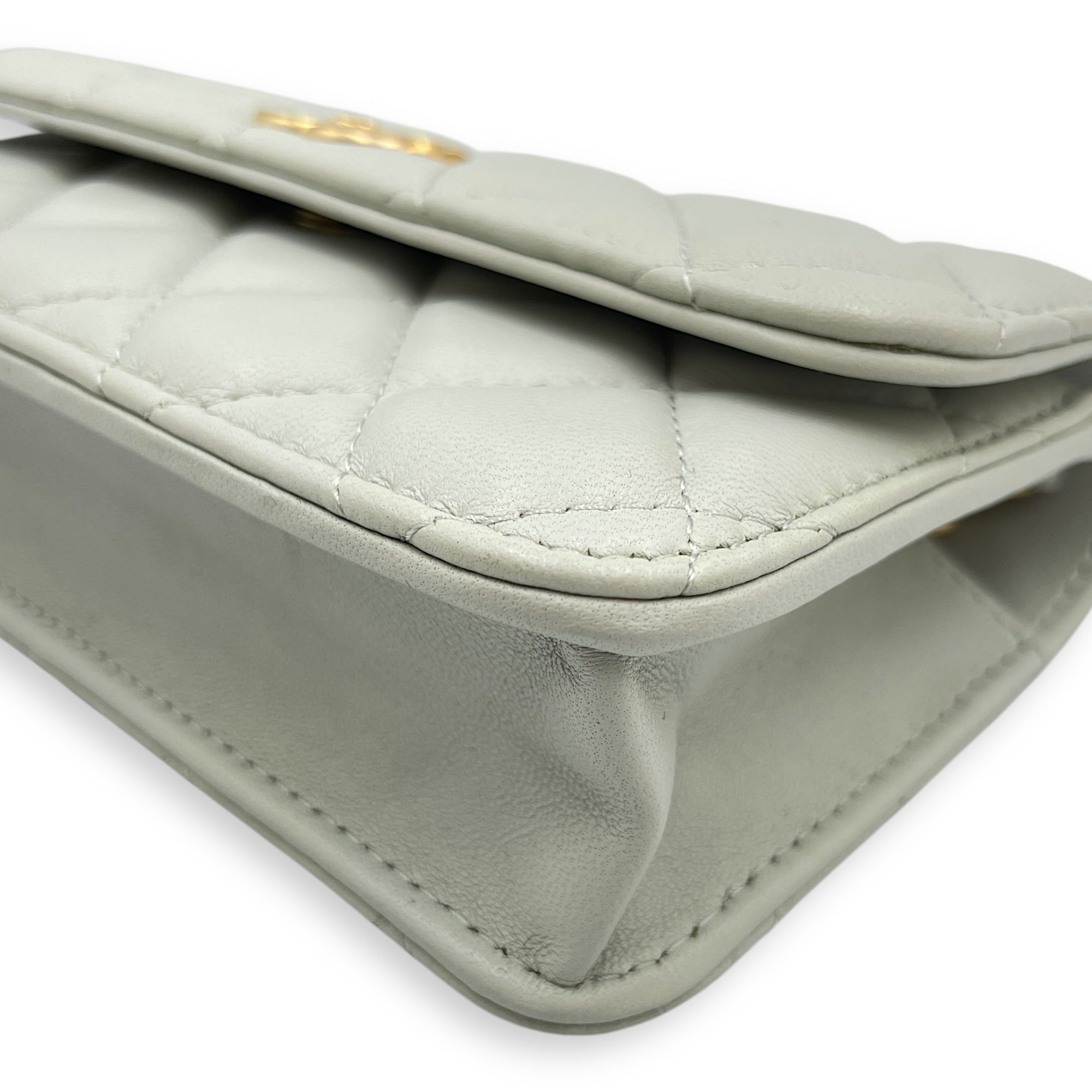 Be the first to review “Phone Holder Light Grey Crossbody Bag in Lambskin, Gold hardware”