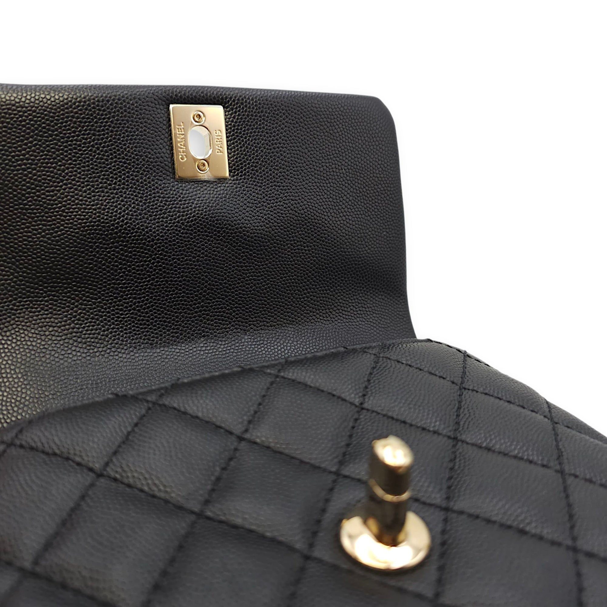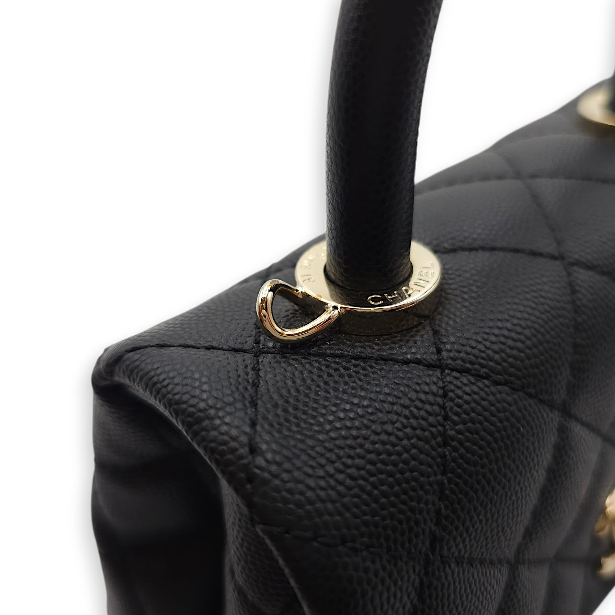 Be the first to review “Quilted Coco Handle Mini Black Shoulder Bag in Caviar Leather, Gold hardware”