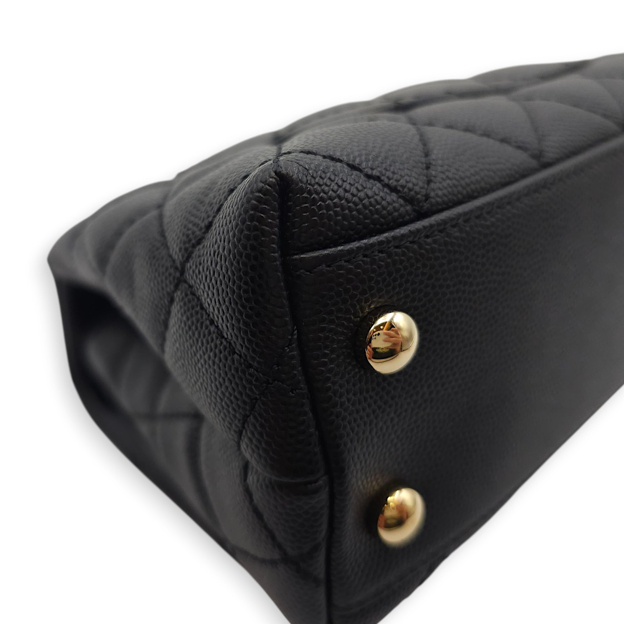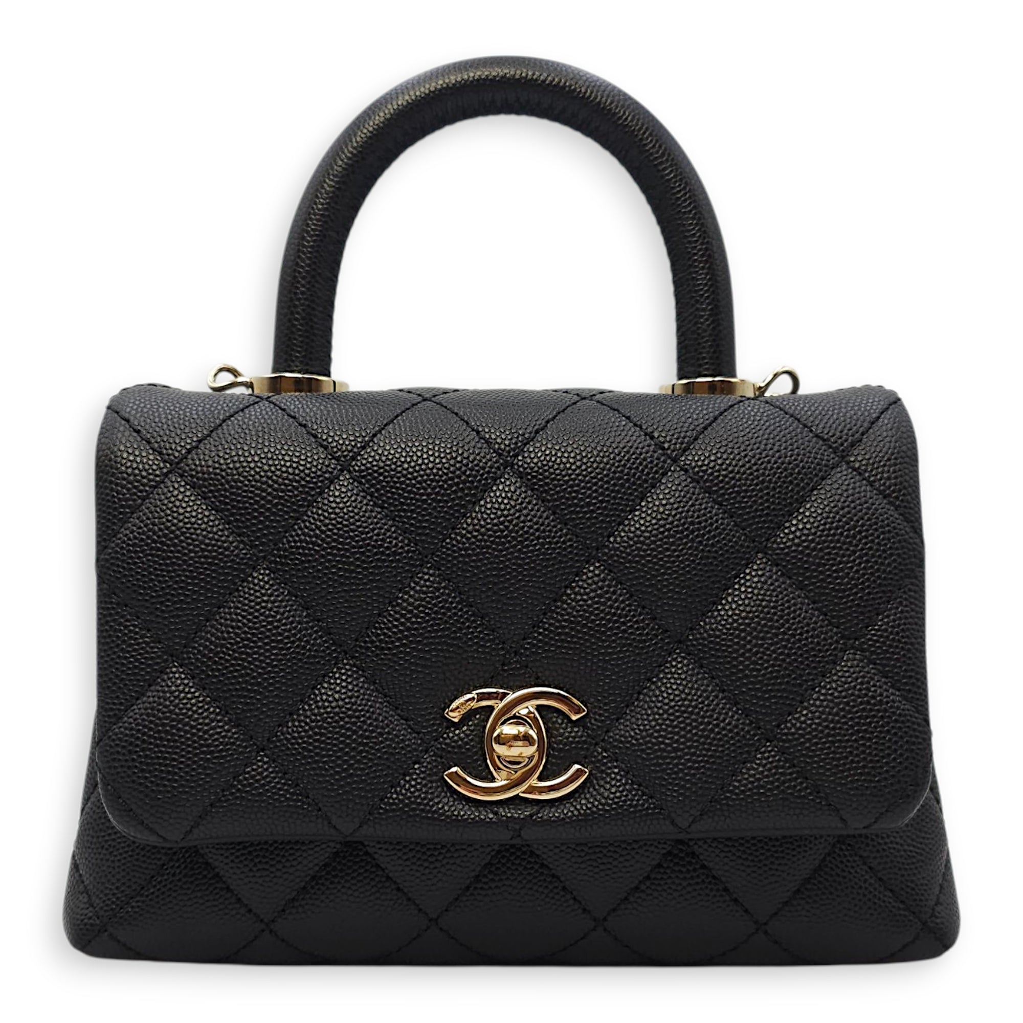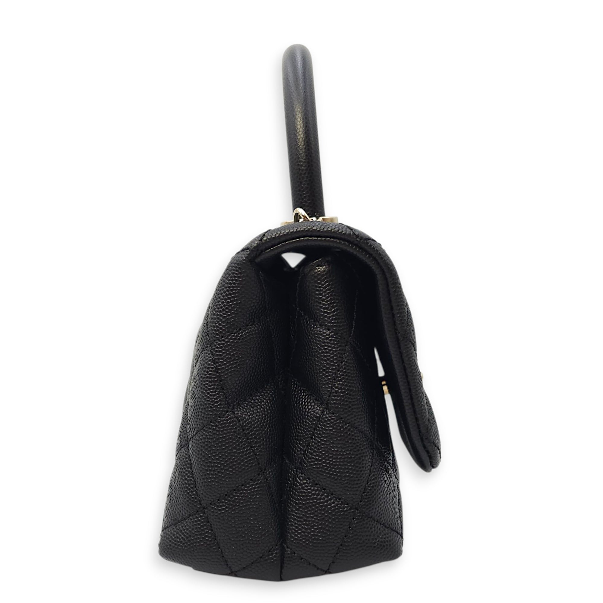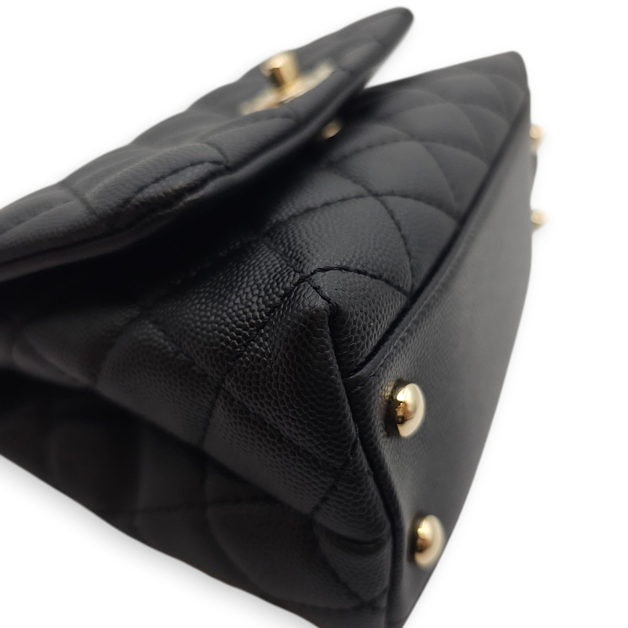Quilted Coco Handle Mini Black Shoulder Bag in Caviar Leather, Gold hardware