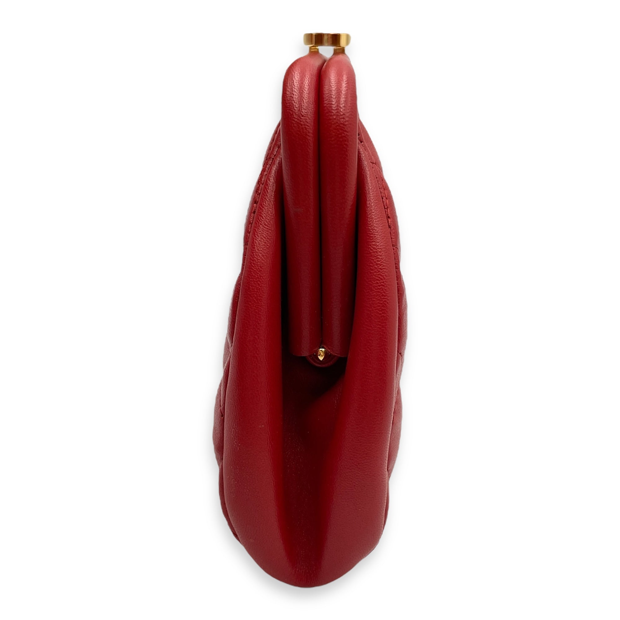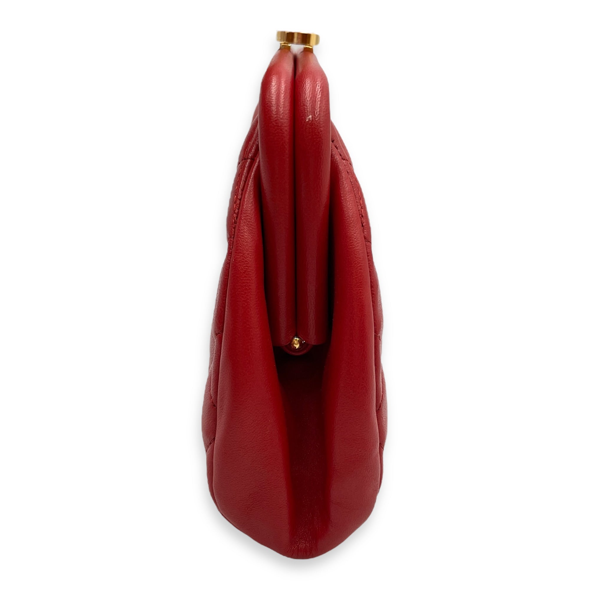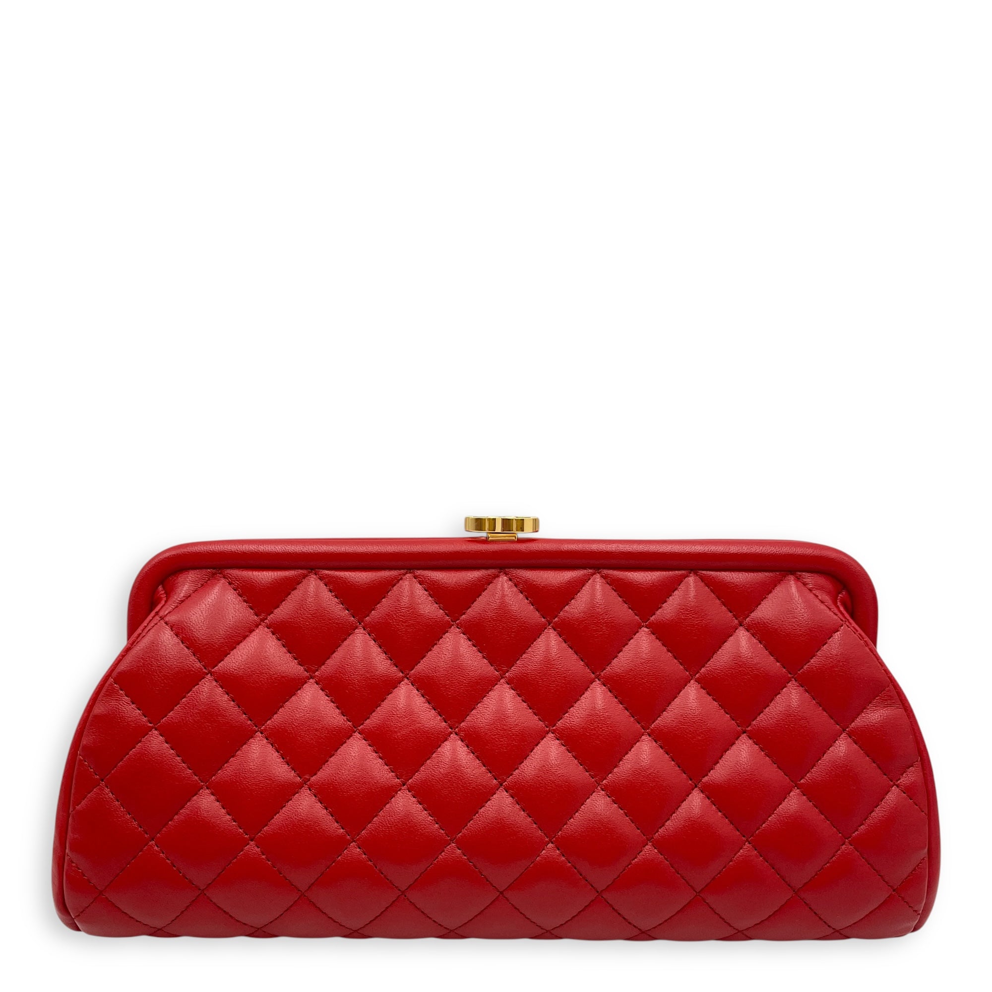 Quilted Timeless Red Clutch in Lambskin, Gold hardware